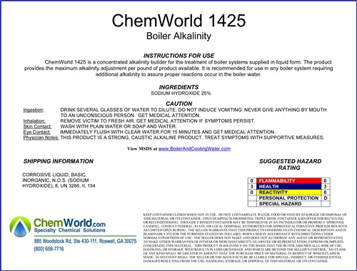 - ChemWorld 1425 is a 25% solution. Each ppm of product contributes 0.31 ppm of alkalinity as CaCO3.