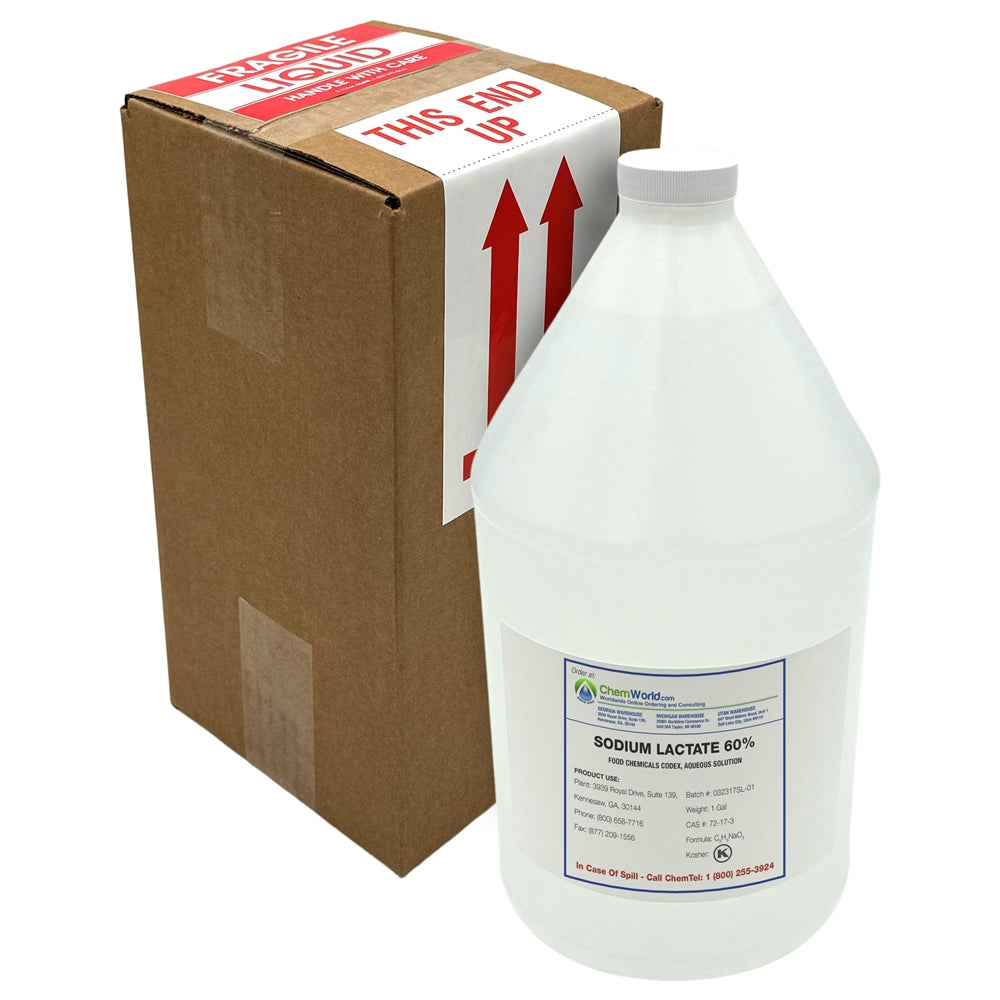 ChemWorld is a stocking distributor of 1 gallon containers of 60% Sodium Lactate. This container is technical grade.|