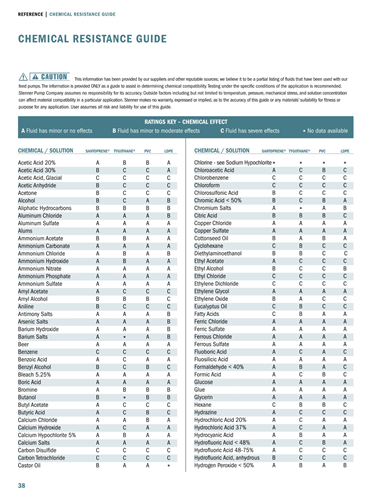 - Santoprene tube material. Check out the material compatibility chart, if you are concerned about chemical compatibility.