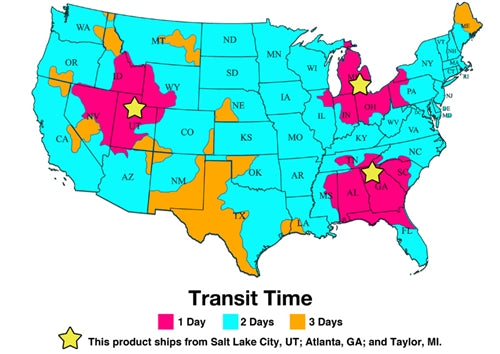 - Stocked and ships daily from Atlanta, Georgia; Detroit, Michigan; and Salt Lake City, Utah.
