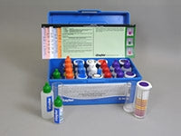 COMPONENTS: 1 x 5051 Instruction 1 x 9198P Sample Tube, Graduated, 25 mL, plastic w/cap and purple dot 1 x 9315 Test Paper, pH, 1.8-3.8 1 x R-0686P-C Sulfuric Acid N (purple cap), 2 oz, DB 1 x R-0697-C Thiosulfate N/10, 2 oz, DB 1 x R-0802P-I XO Indicator Powder, 10 g 1 x R-0803-C Phosphonate Titrating Solution, 2 oz, DB 1 x R-0805-C Fluoride Masking Agent, 2 oz, DB.