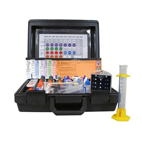 COMPONENTS: 1 x 5229C Instruction 1 x 9198G Sample Tube, Graduated, 25 mL, plastic w/cap and green dot 1 x R-0638G-C Phenolphthalein Indicator (green cap), 2 oz, DB 1 x R-0645-C Total Alkalinity Indicator, 2 oz, DB 1 x R-0724-C Hydrochloric Acid .12N, 2 oz, DB.