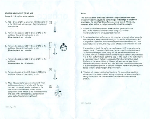 The new KATHON ( Isothiazolin) Microbiocide test kit enables the rapid and accurate measurement of active microbicide in a range of industrial cooling water applications. The test can be performed on-site at the cooling tower, eliminating the requirement to return the sample to a laboratory for evaluation. The KATHON kit has been designed to be simple and easily used by operators regardless of their experience.